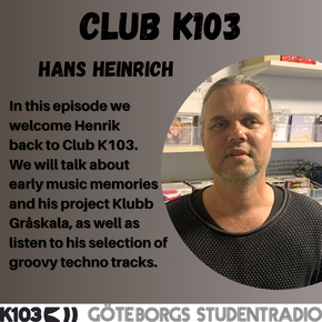 In this episode Hans Heinrich is back behind the Club K103 decks. He will play us some groovy and house inspired techno. Listen to Club K103, Saturdays at 20:00 on 103,1 MHz or https://k103.se/webbradio.